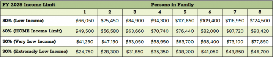 The following income figures are determined and published by the U.S. Department of Housing and Urban Development (HUD). These figures are used by the City's Housing and Neighborhood Services Division to determine a household's eligibility for program assistance. The figures may help you evaluate your eligibility for housing assistance, including the City's homeowner rehabilitation assistance program. Income eligibility is evaluated based on gross income.